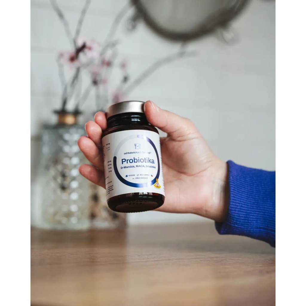 Produkt Probiotika obsahuje 20 miliard probiotických bakterií z 20 kmenů. Pro podporu normální funkce močových cest je navíc doplněný o D-manózu a brusinkový prášek. D-manóza je jednoduchý cukr, který je tělu vlastní a je součástí přirozené ochranné vrstvy močového měchýře. Po vstřebání do organismu se D-manóza v nezměněné formě vylučuje ledvinami právě do močového měchýře. Jedinečnost kombinace doplňuje inulin, který přispívá k normální funkci střev a Maca peruánská. Peruánská maca, známá také jako Lepidium meyenii nebo jednoduše maca, je rostlina původem z Jižní Ameriky, zejména z horských oblastí Peru. Je to kořenová zelenina, která vzhledem připomíná ředkvičku nebo tuřín. Přípravek Probiotika obsahuje prášek vyrobený ze sušeného kořene. Brusinkový prášek je získaný ze sušené Brusinky obecné (Vaccinium vitis-idaea).