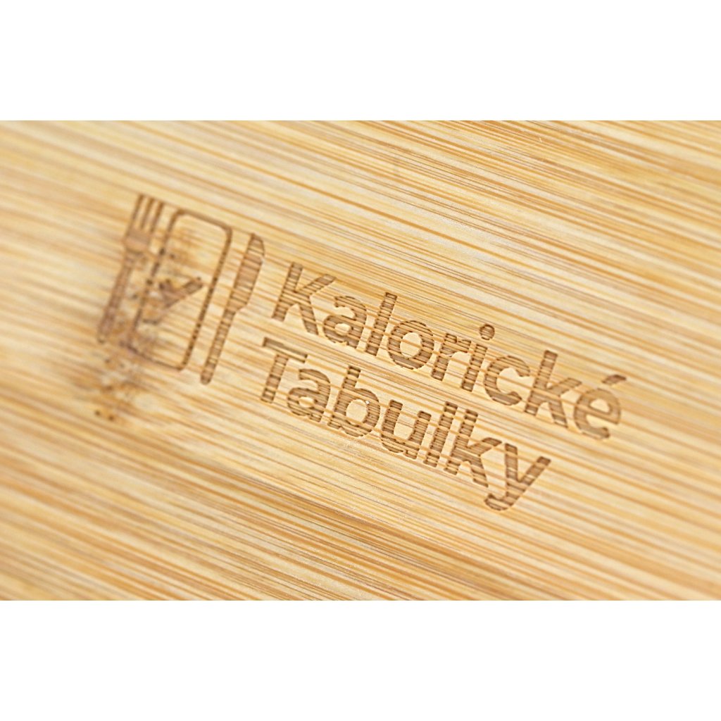 Připrav si ovoce, zeleninu nebo maso pro svůj vyvážený oběd do Kalorických Tabulek na prkénku z bambusového dřeva. Gravírovaný nápis Kalorické Tabulky ti připomene, ať máš vše poctivě zapsáno.