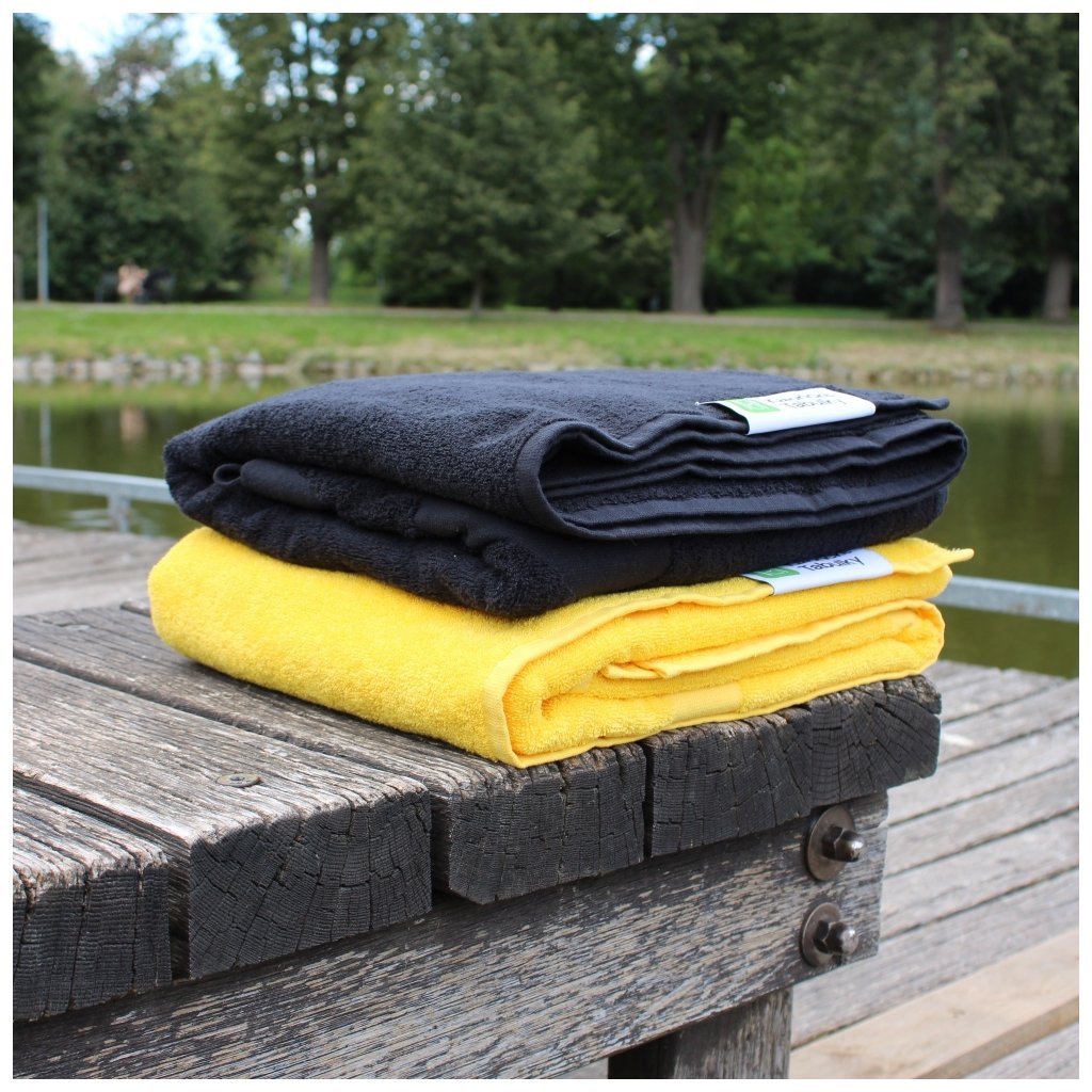 Plážová osuška Kalorické Tabulky® - sada černá a žlutá 100x180cm